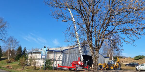 La construction de la centrale photovoltaïque sur une toiture de la base ULM de Doucier appartenant à M. Jean-François PUTOD est lancée.
