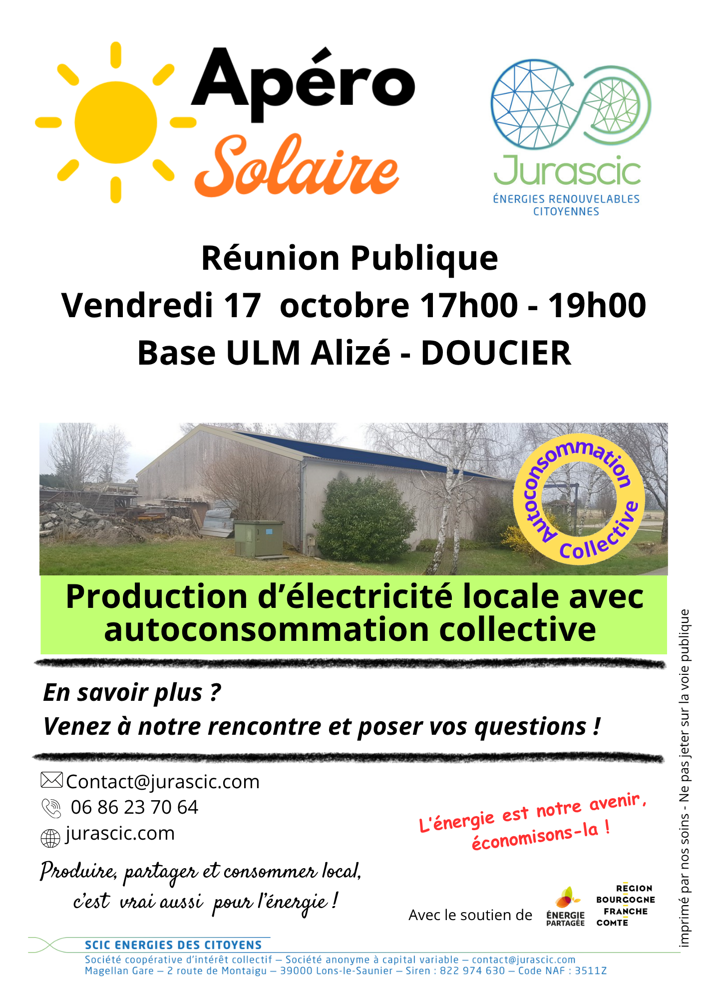 160 m² de panneaux photovoltaïques seront prochainement installés sur la toiture du hangar Alizé de la base ULM de Doucier et produiront de l’électricité pendant plus de vingt ans. Cette électricité sera injectée en totalité sur le réseau avec la possibilité, à très court terme, de pouvoir être consommée par des habitants, entreprises, collectivités situées à proximité de la centrale dans le cadre d’une opération dite d’autoconsommation collective.